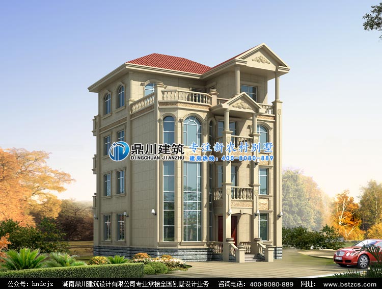 HY001四層帶露臺別墅設計圖紙外觀效果圖,鼎川建筑四層別墅設計