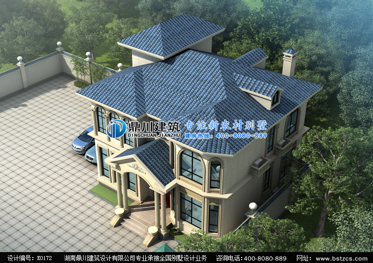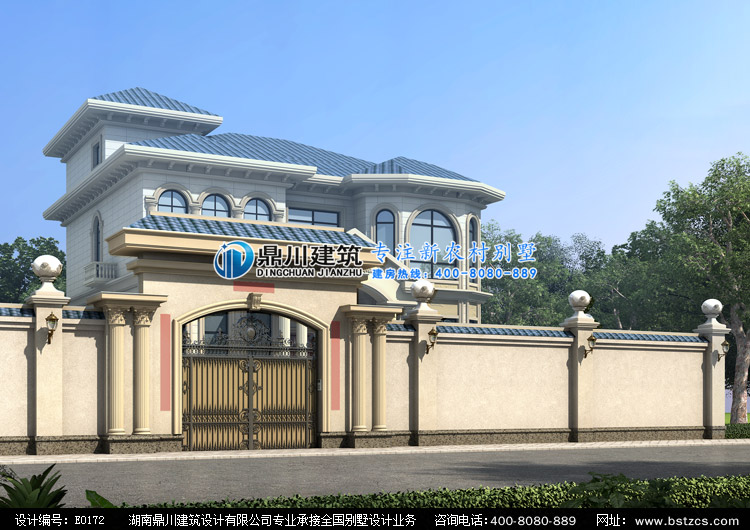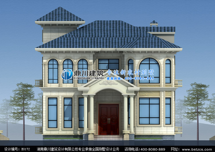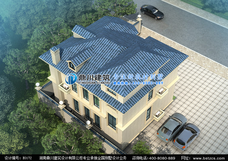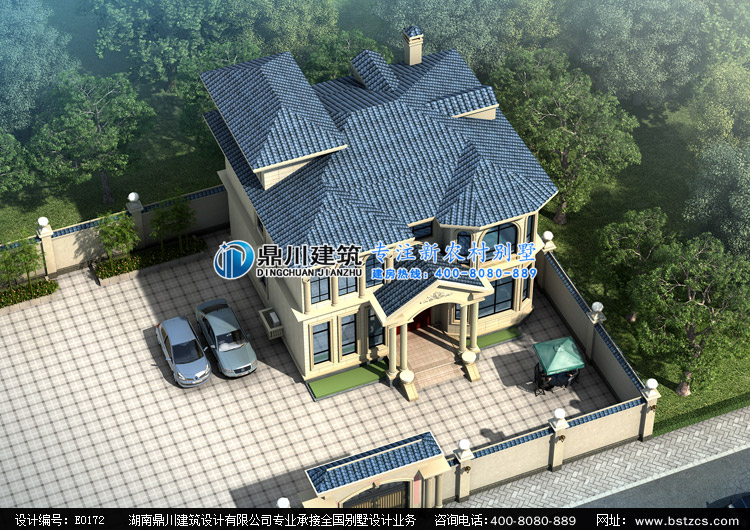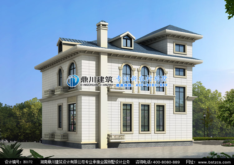 E0172漂亮的二層小別墅設計外觀效果圖,鼎川建筑別墅私人定制設計