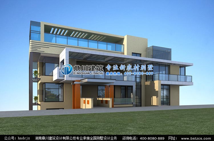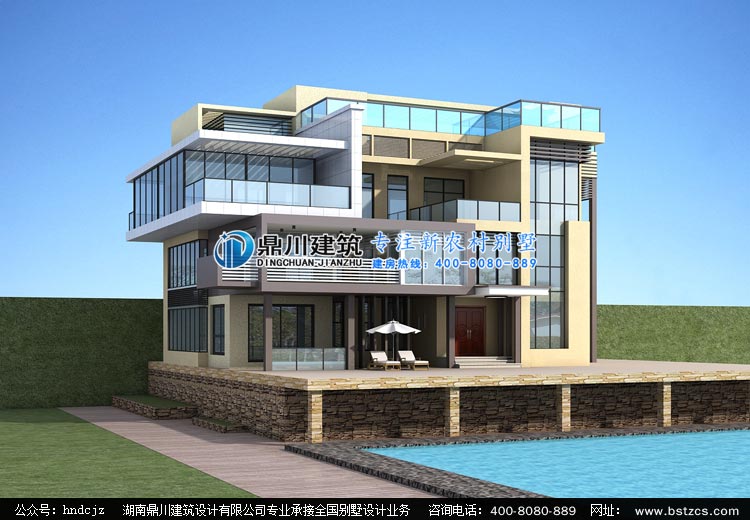 L0188帶游泳池的現代風格大別墅設計效果圖,鼎川建筑外觀定制效果圖
