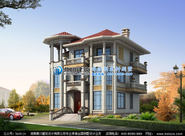E0195大氣的三層歐式別墅設計外觀效果圖,鼎川建筑私人定制效果圖