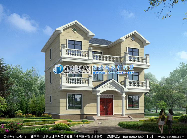 L0228三層帶露臺農(nóng)村自建房圖紙設計,鼎川建筑三層別墅設計效果圖