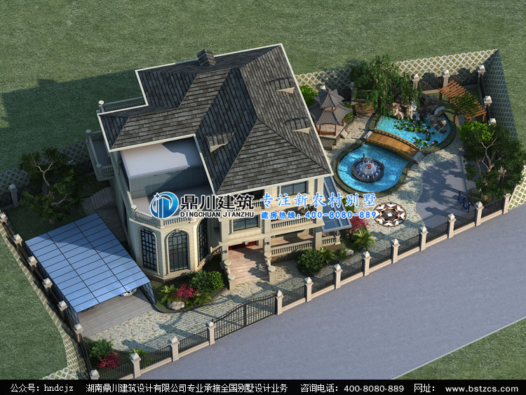 ZH005歐式三層帶露臺別墅設計圖效果圖,鼎川建筑歐式別墅設計