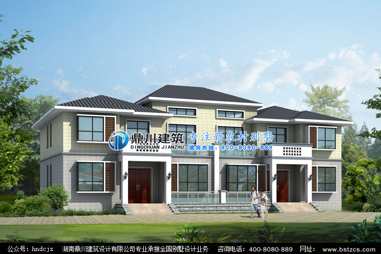 D0258二層帶閣樓雙拼別墅外觀效果圖,鼎川建筑雙拼別墅設(shè)計(jì)