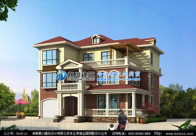 E0126三層帶露臺歐式別墅設計圖效果圖,鼎川建筑三層別墅設計圖