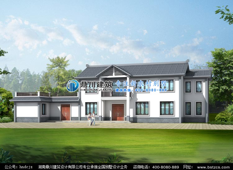 D0257中式二層農村自建房屋設計外觀效果圖,鼎川建筑中式房屋設計