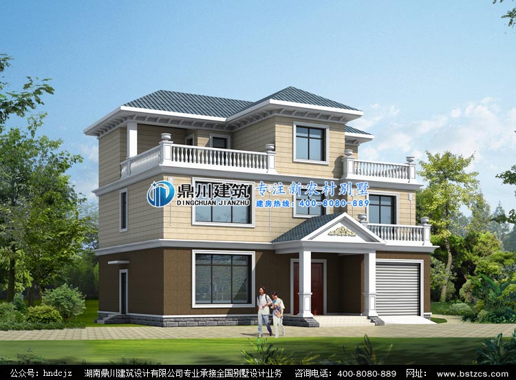 D0259三層帶車庫農(nóng)村小別墅設(shè)計(jì)圖外觀,鼎川建筑農(nóng)村房屋設(shè)計(jì)
