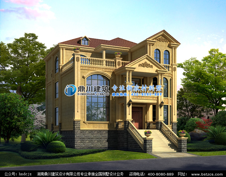 HY037歐式三層復式別墅設計圖效果圖,鼎川建筑私人定制別墅設計圖