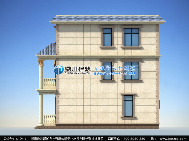 HY046三層平屋頂歐式別墅設(shè)計(jì)圖外觀(guān)效果圖,鼎川建筑三層別墅設(shè)計(jì)