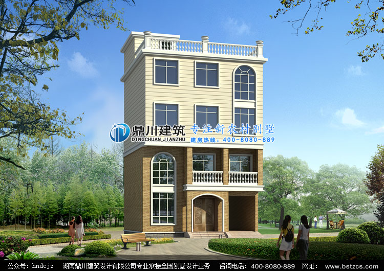 TL003四層半帶露臺農村自建房設計圖效果圖,鼎川建筑四層小別墅設計