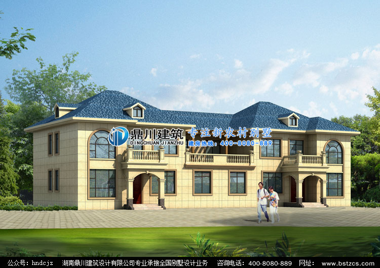 當(dāng)前位置: 首頁 > 設(shè)計案例 > E0259二層農(nóng)村兄弟雙拼別墅外觀效果圖,鼎川建筑雙拼自建小別墅設(shè)計圖