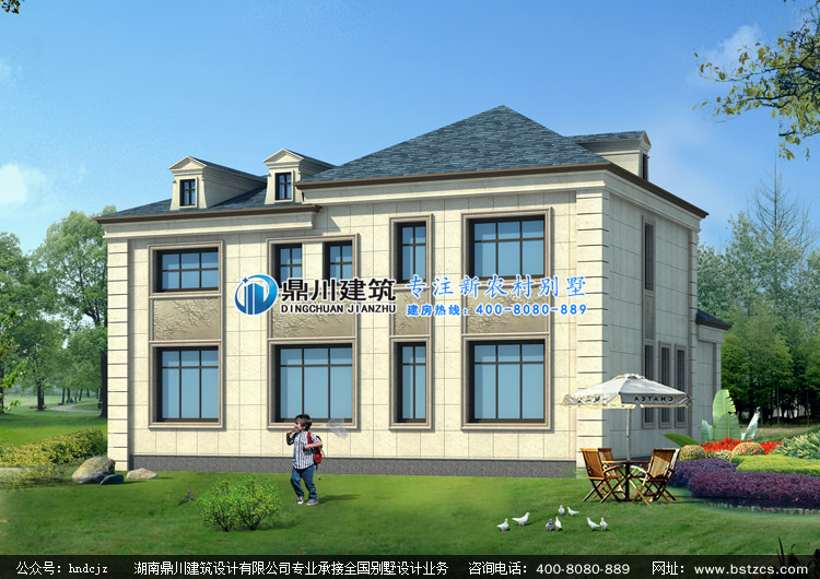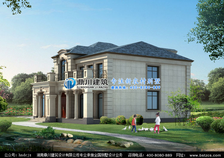 D0248漂亮的二層帶露臺歐式別墅外觀效果圖,鼎川建筑歐式別墅設計圖效果圖