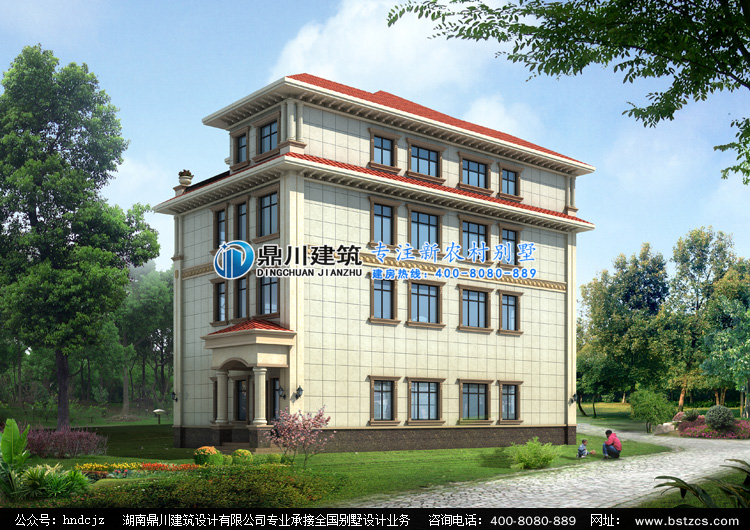 J0197四層歐式雙拼別墅設計圖效果圖,鼎川建筑歐式雙拼別墅設計