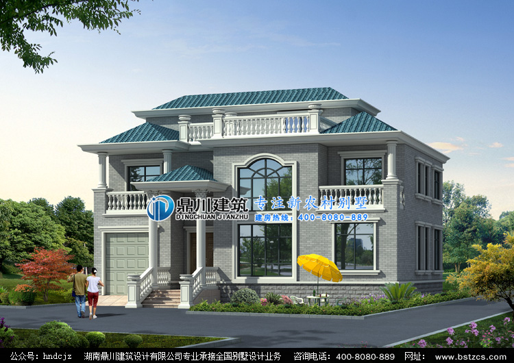 E0251三層帶車庫露臺別墅設計圖紙外觀效果圖,鼎川建筑三層別墅設計