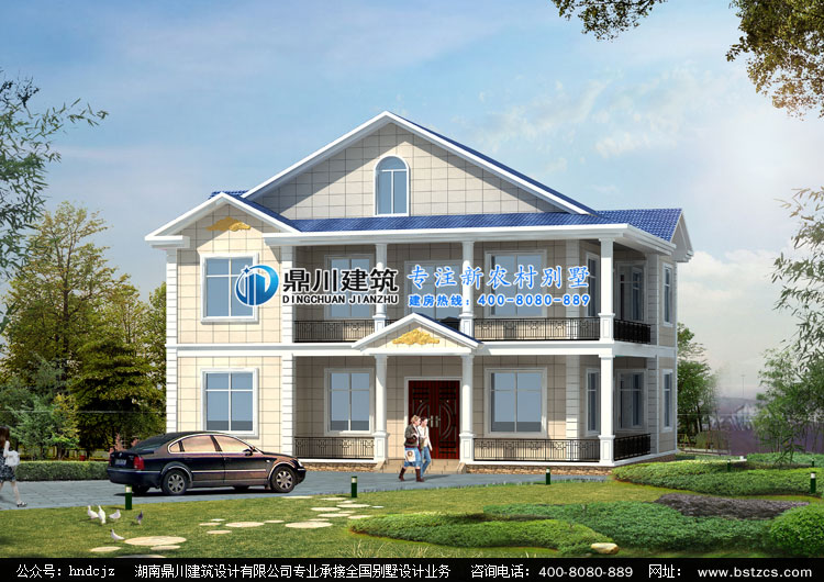 ZW002二層帶閣樓農村自建房設計圖效果圖,鼎川建筑農村兩層小別墅設計圖