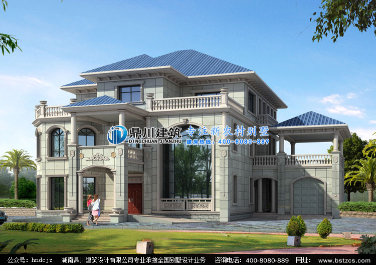 W0233三層復式歐式別墅設計圖效果圖,鼎川建筑三層歐式別墅設計