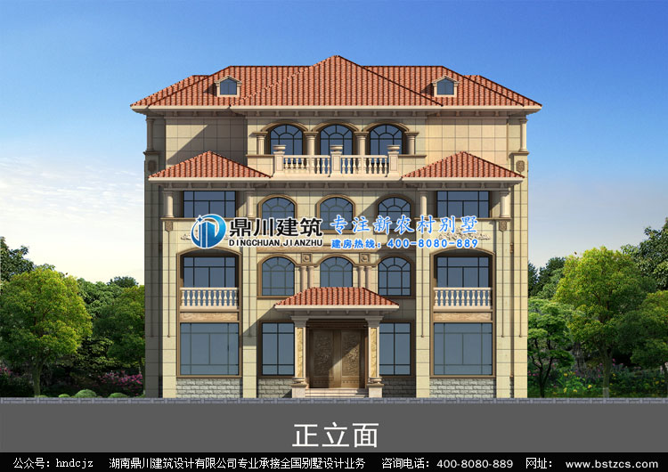 L0286大氣的四層雙拼歐式別墅設計外觀效果圖,鼎川建筑雙拼別墅圖紙設計