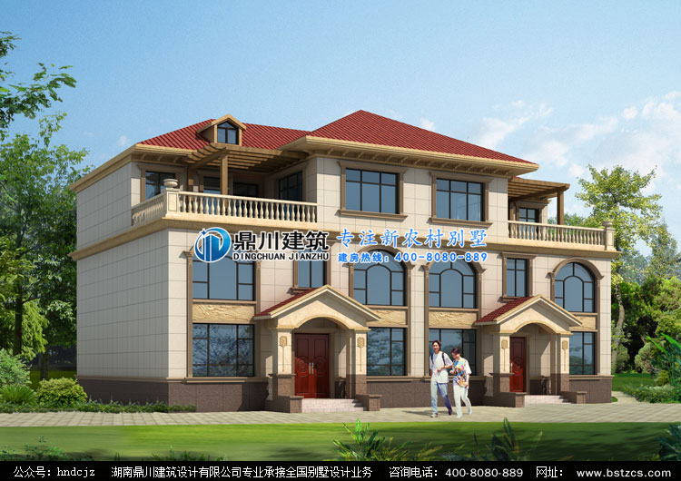 JL017歐式三層雙拼別墅設計圖外觀效果圖,鼎川建筑三層雙拼別墅設計