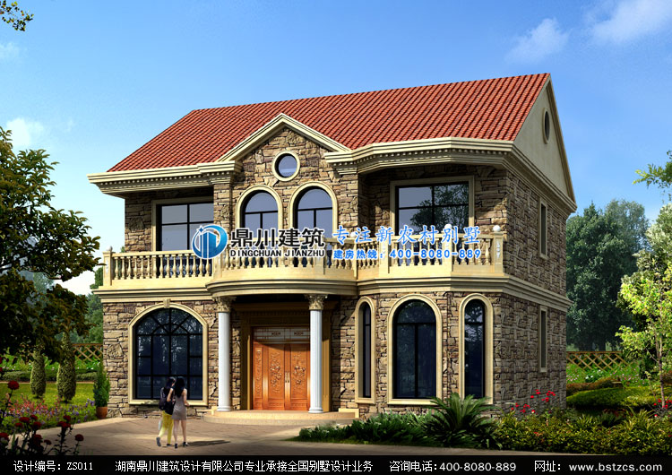 ZS011新農(nóng)村二層小別墅設(shè)計(jì)圖效果圖,農(nóng)村兩層自建房屋設(shè)計(jì)圖紙