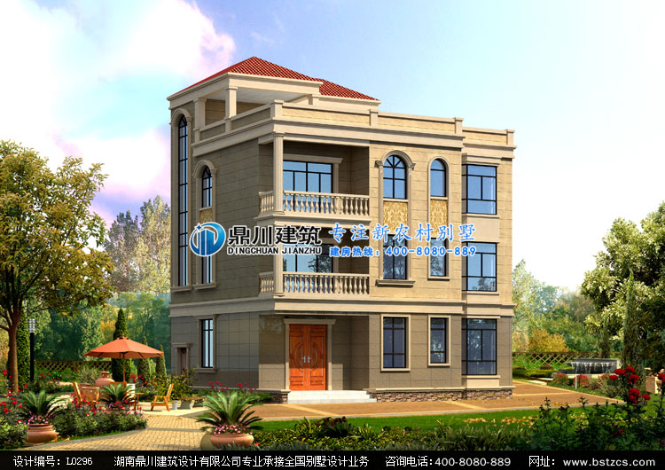 L0296四層帶露臺農村自建房設計圖效果圖,鼎川建筑四層別墅設計圖紙效果圖