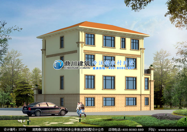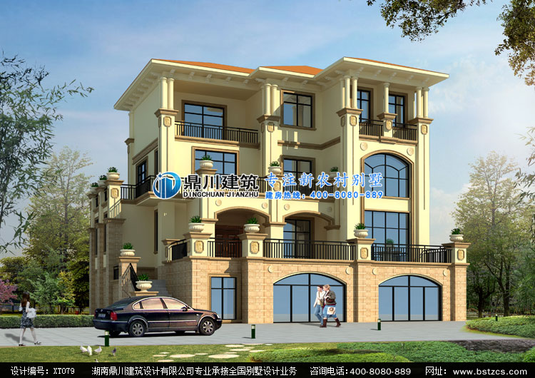 XT079四層歐式帶商鋪別墅設計圖紙外觀效果圖,鼎川建筑四層門面房別墅設計