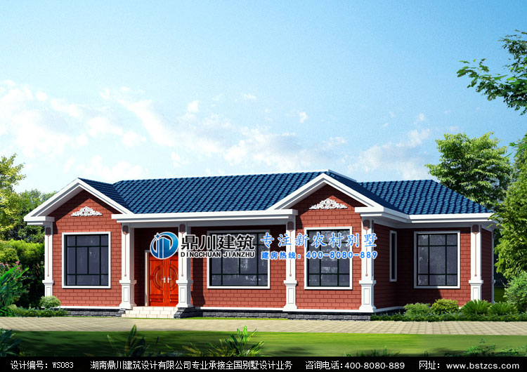 WS083農村一層平房設計圖外觀效果圖,鼎川建筑一層農村自建房屋設計圖效果圖