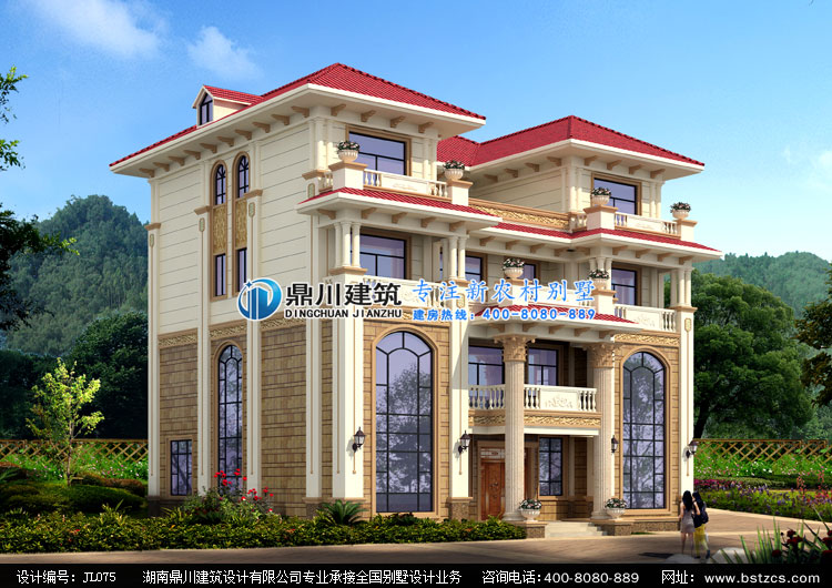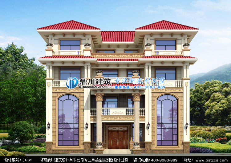 JL075豪華歐式四層別墅設(shè)計(jì)圖紙外觀效果圖,鼎川建筑四層歐式別墅私人定制設(shè)計(jì)