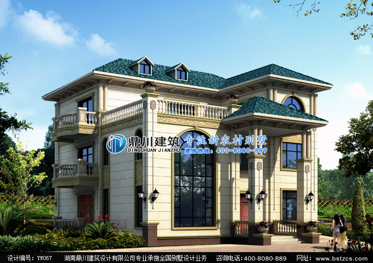 YW067三層帶露臺歐式別墅私人定制設計圖紙效果圖,鼎川建筑三層別墅設計圖外觀