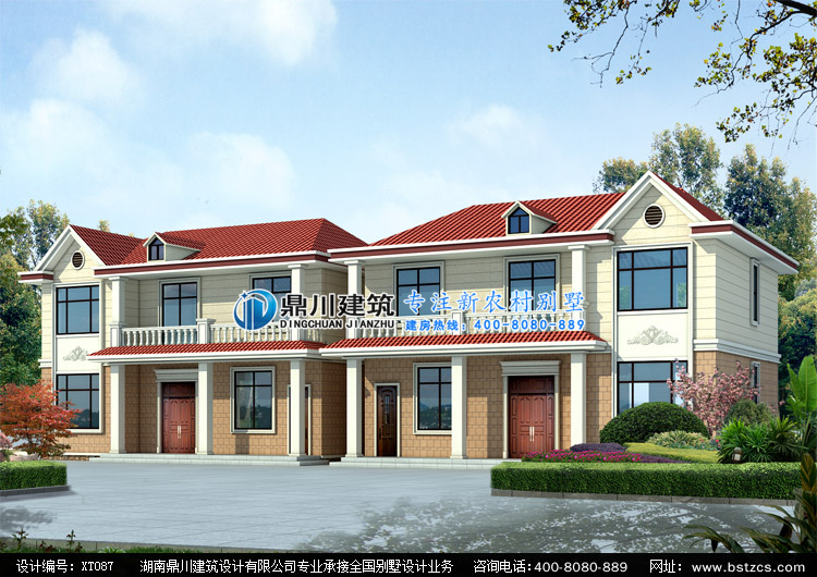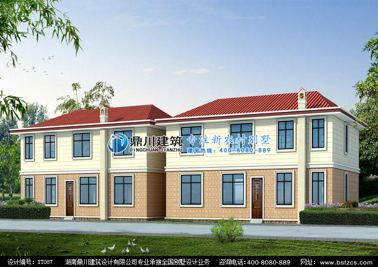 XT087農村兩層房屋設計圖效果圖,鼎川建筑二層小別墅自建房屋設計圖