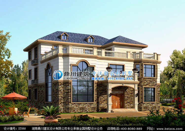 XT068三層帶露臺農(nóng)村自建別墅圖紙外觀效果圖,鼎川建筑私人定制別墅設(shè)計