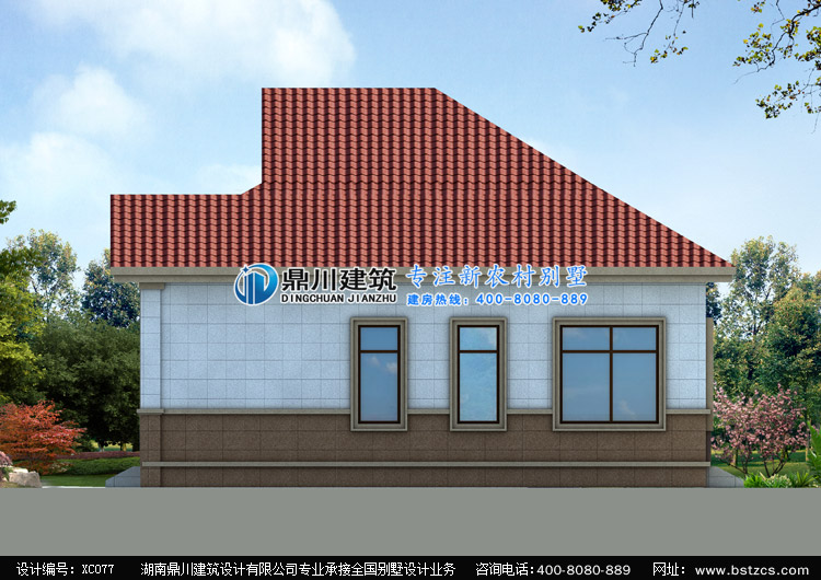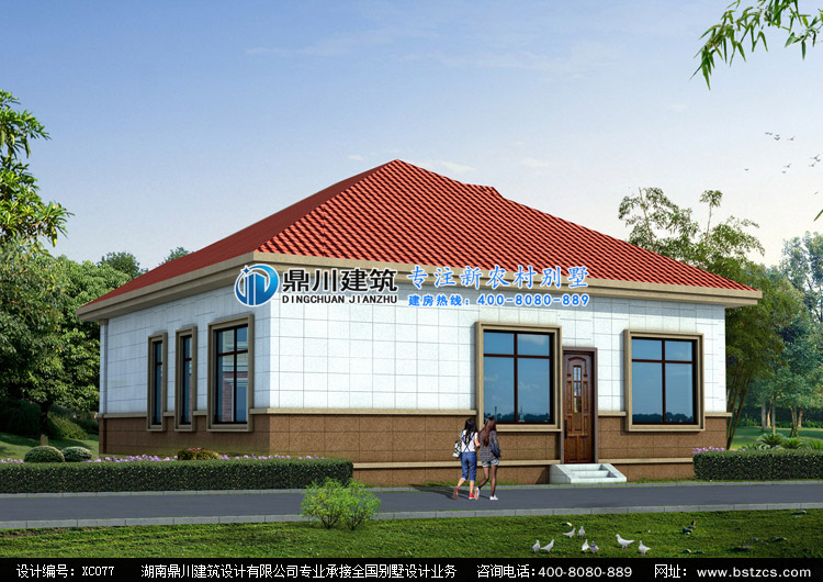 XC077漂亮的一層帶閣樓自建小別墅圖紙效果圖,鼎川建筑一層自建房屋設計圖外觀