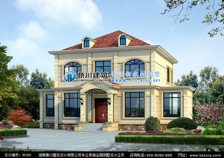 HC060農村兩層小別墅設計圖外觀效果圖,鼎川建筑二層自建別墅定制設計
