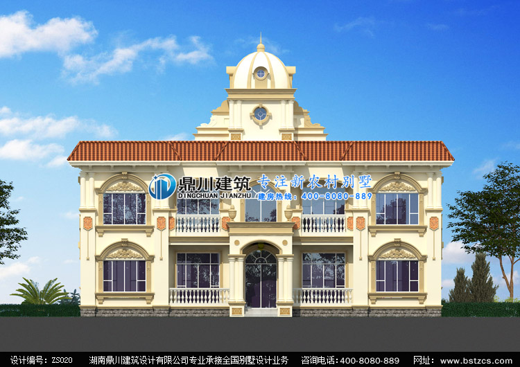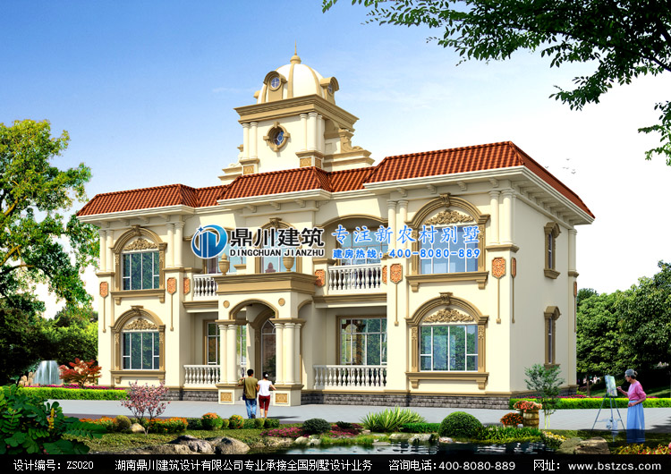 ZS020二層豪華歐式別墅設計圖紙外觀效果圖,鼎川建筑歐式別墅全方位效果圖設計