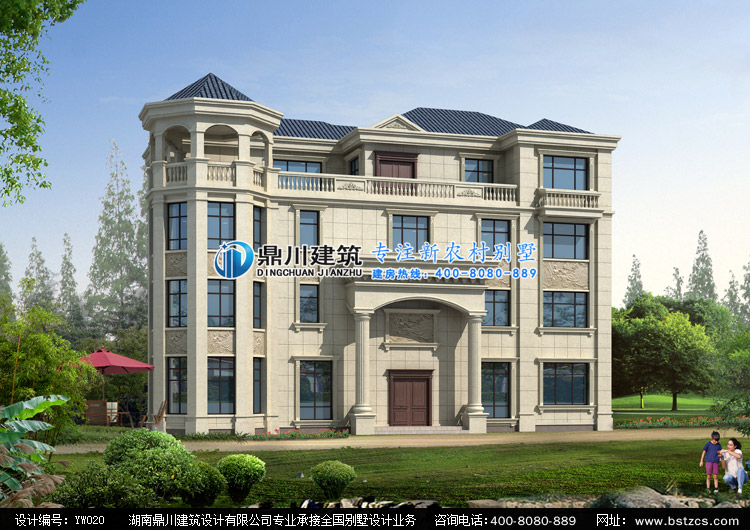YW020歐式四層帶露臺別墅圖紙外觀效果圖,鼎川建筑四層別墅設計效果圖