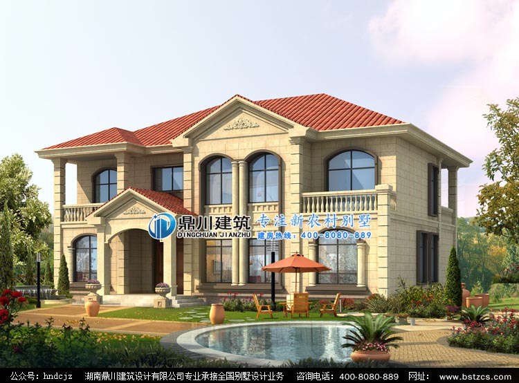 J074漂亮的二層歐式別墅設計圖效果圖,鼎川建筑農村別墅設計
