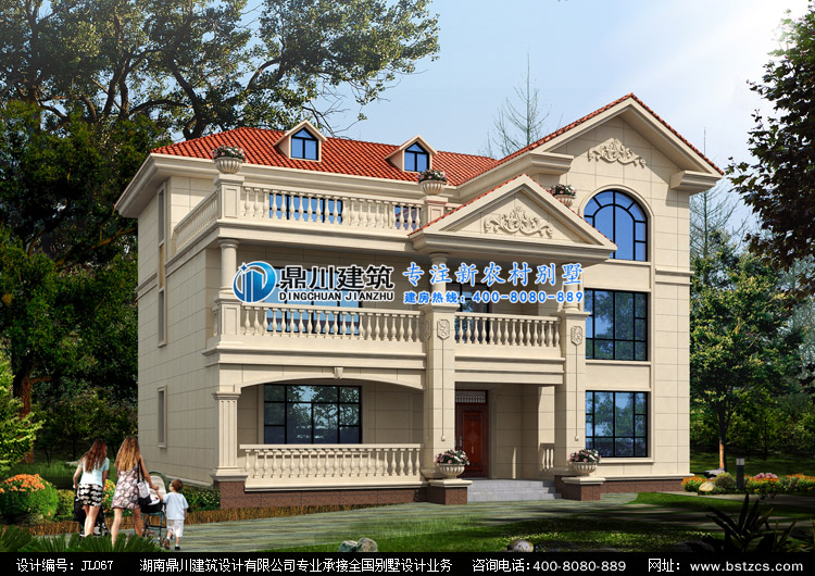 JL067三層帶露臺(tái)歐式別墅圖紙外觀效果圖,鼎川建筑農(nóng)村三層別墅圖紙效果圖
