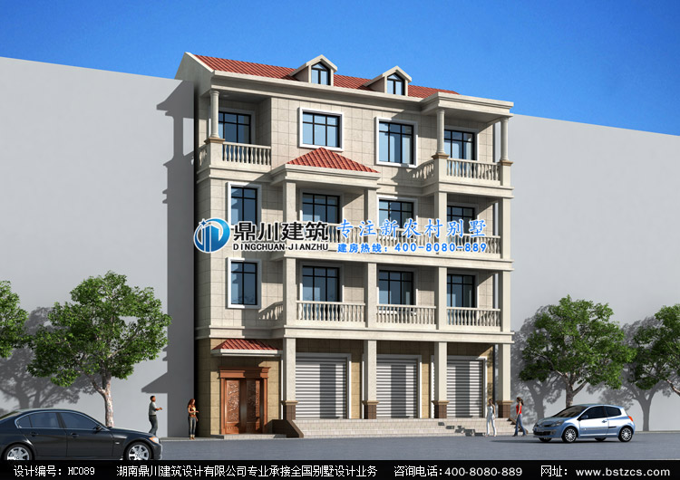 HC089四層帶門面自建別墅設(shè)計(jì)圖紙效果圖,鼎川建筑四層帶商鋪?zhàn)越ǚ吭O(shè)計(jì)效果圖