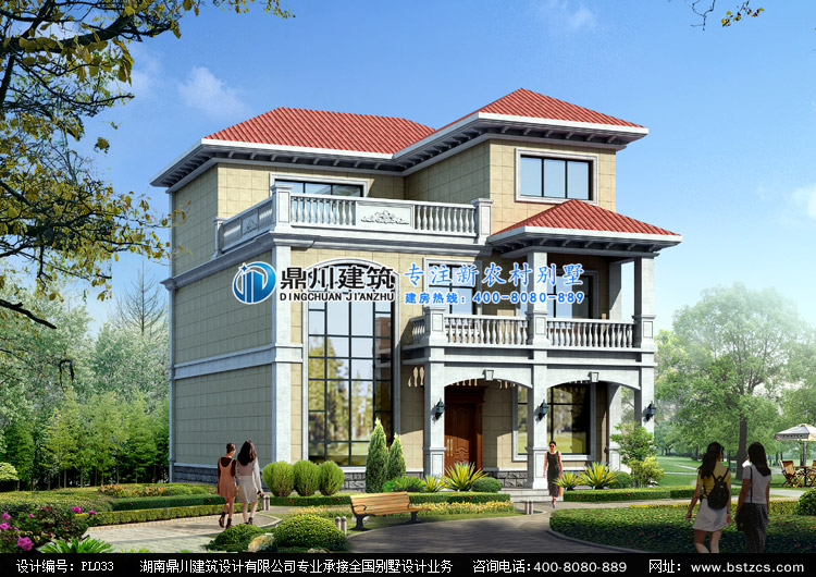 PL033三層帶露臺農村小別墅圖紙外觀效果圖,鼎川建筑三層農村住宅設計圖
