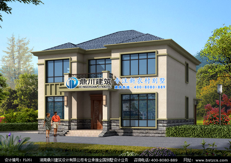 PL051簡單二層帶露臺農村自建房設計圖紙效果圖,鼎川建筑農村兩層小別墅圖紙效果圖