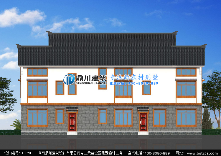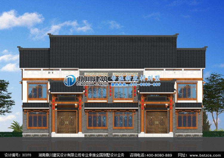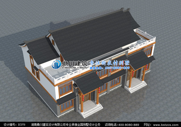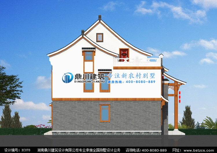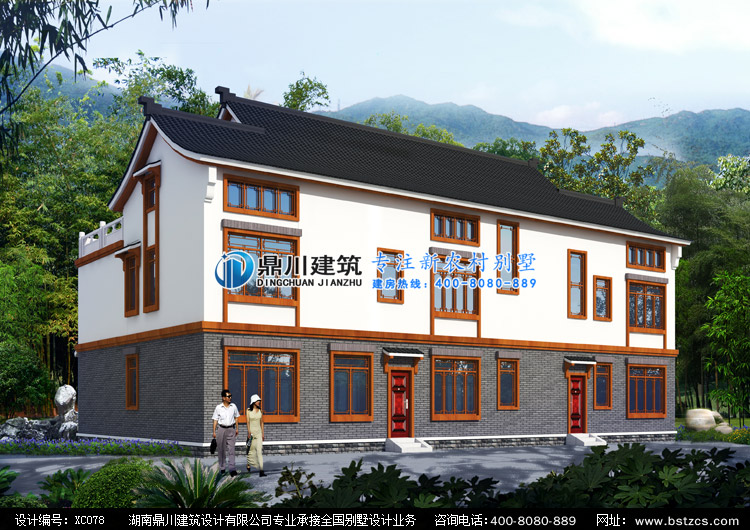 XC078農村二層半雙拼中式別墅設計圖效果圖,鼎川建筑中式雙拼別墅定制設計