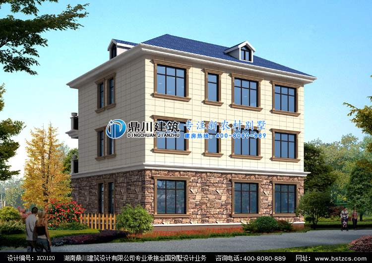 XC0120三層帶露臺農村自建別墅圖紙外觀效果圖,鼎川建筑三層別墅私人定制設計