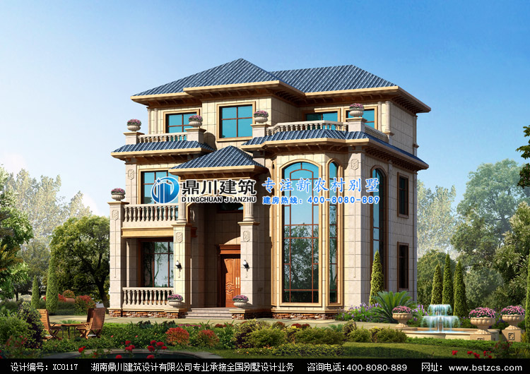 XC0117復式三層歐式別墅設計圖紙效果圖,鼎川建筑三層歐式別墅定制設計