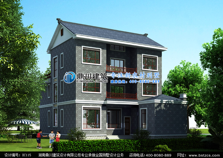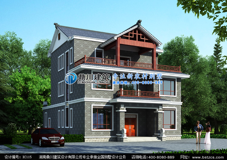 XC115中式三層帶露臺農村自建房屋設計圖效果圖,鼎川建筑三層中式別墅私人定制設計