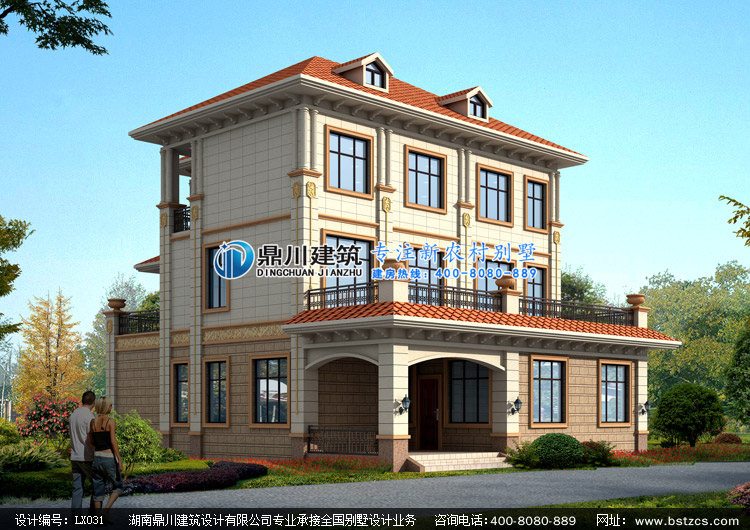LX031復式三層帶露臺歐式別墅設計圖效果圖,鼎川建筑三層自建別墅圖紙設計