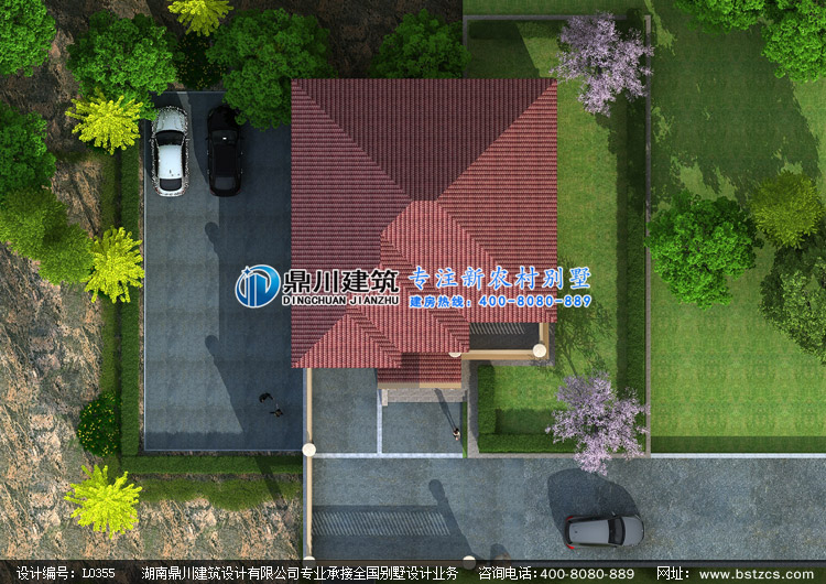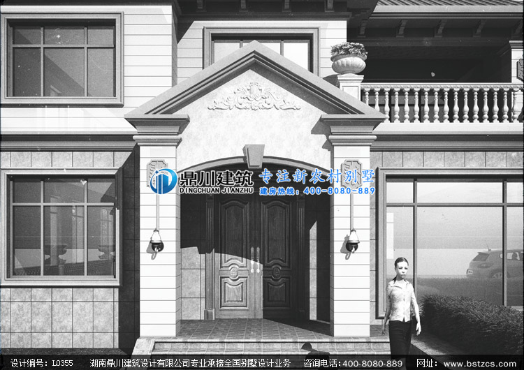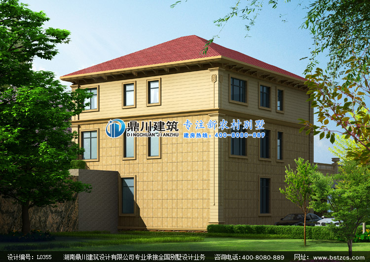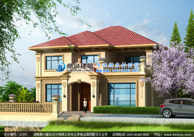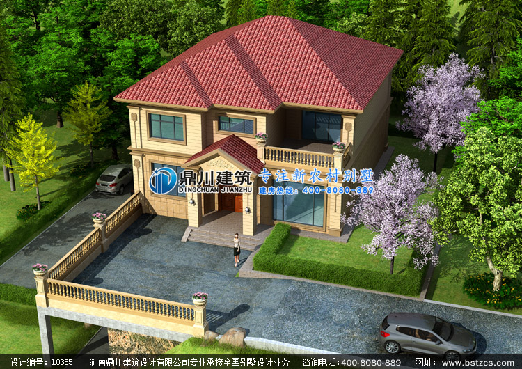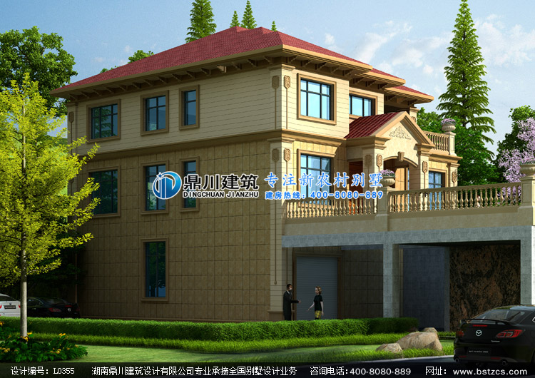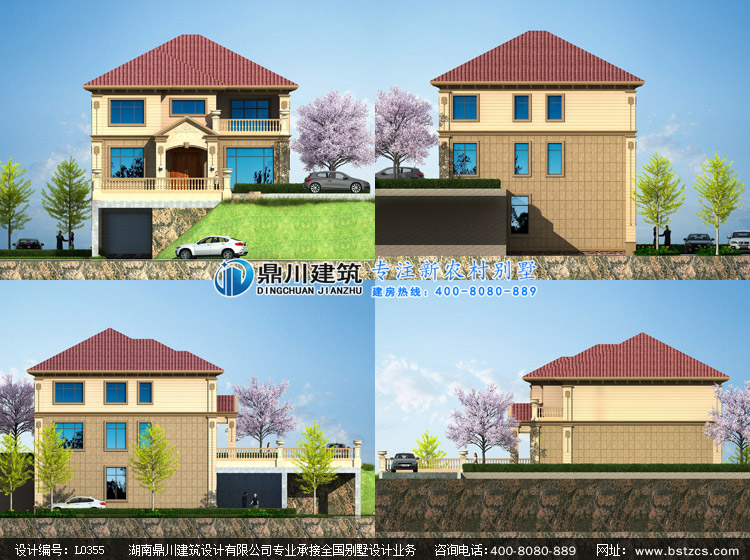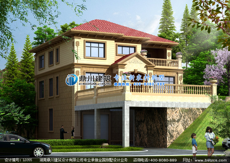 L0355二層帶地下架空車庫層的農村別墅設計圖外觀效果圖,鼎川建筑二層別墅私人定制設計