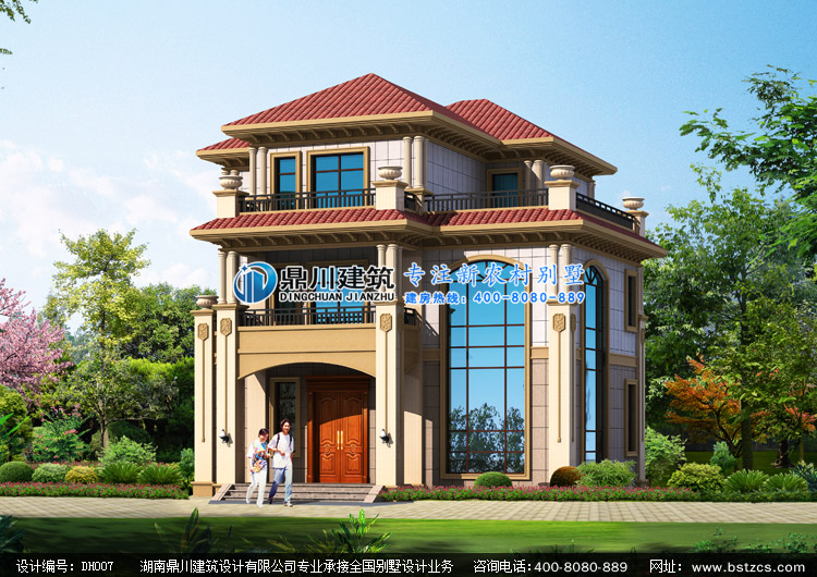 DH007復(fù)式三層歐式小別墅設(shè)計圖外觀效果圖,新農(nóng)村三層帶露臺歐式別墅設(shè)計