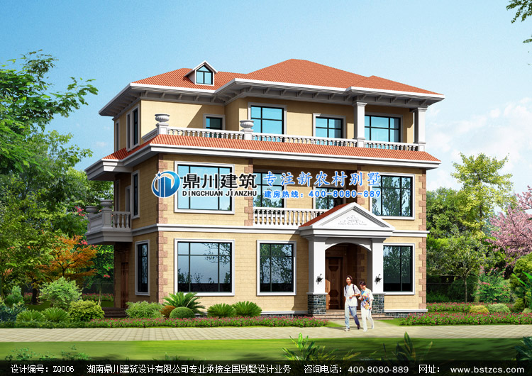 ZQ006農村三層自建別墅圖紙設計圖效果圖,鼎川建筑三層自建房私人定制設計