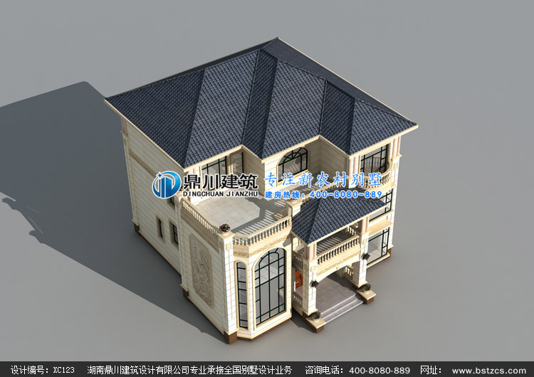 XC123新農村三層復式歐式別墅設計圖紙外觀效果圖,鼎川建筑三層別墅定制設計