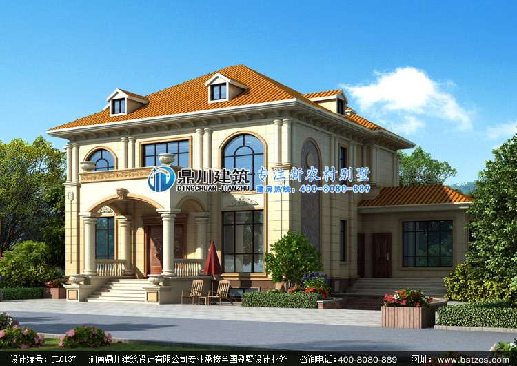 JL0137漂亮的二層帶露臺歐式別墅設計圖外觀效果圖,鼎川建筑三層農村別墅設計