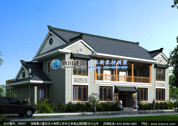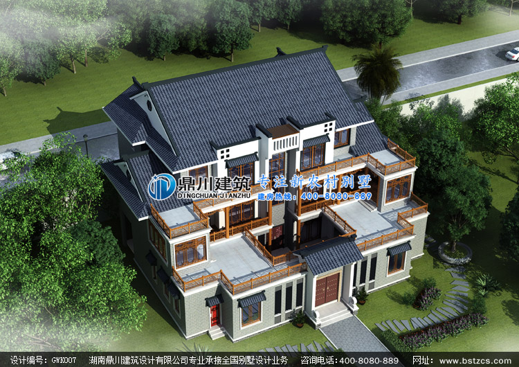 GWK007三層中式別墅設(shè)計(jì)圖紙外觀效果圖,中式三層農(nóng)村自建房屋設(shè)計(jì)圖效果圖