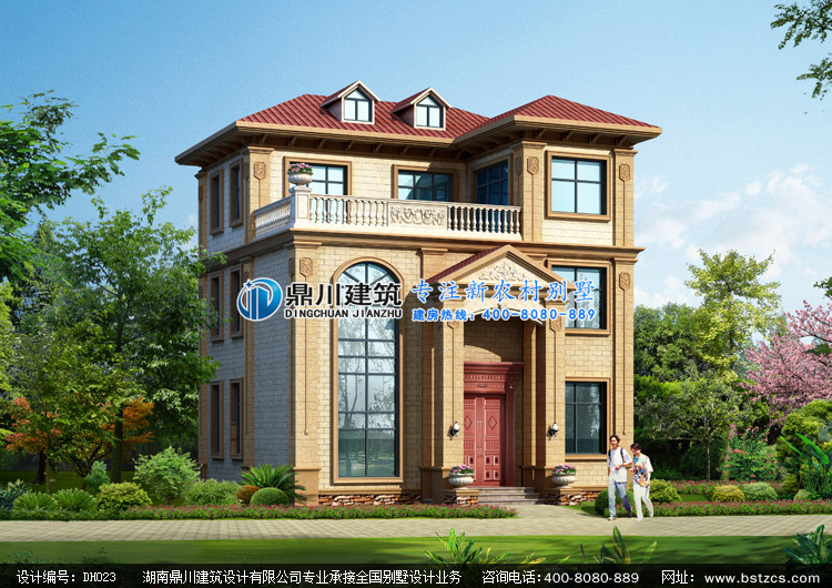 DH023復式三層帶露臺鄉村小別墅設計圖效果圖,新農村三層別墅圖紙效果圖